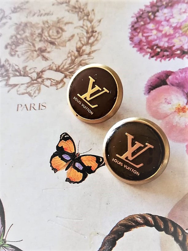 18 mm stamped buttons,gripox,brown,gold metal--L.V